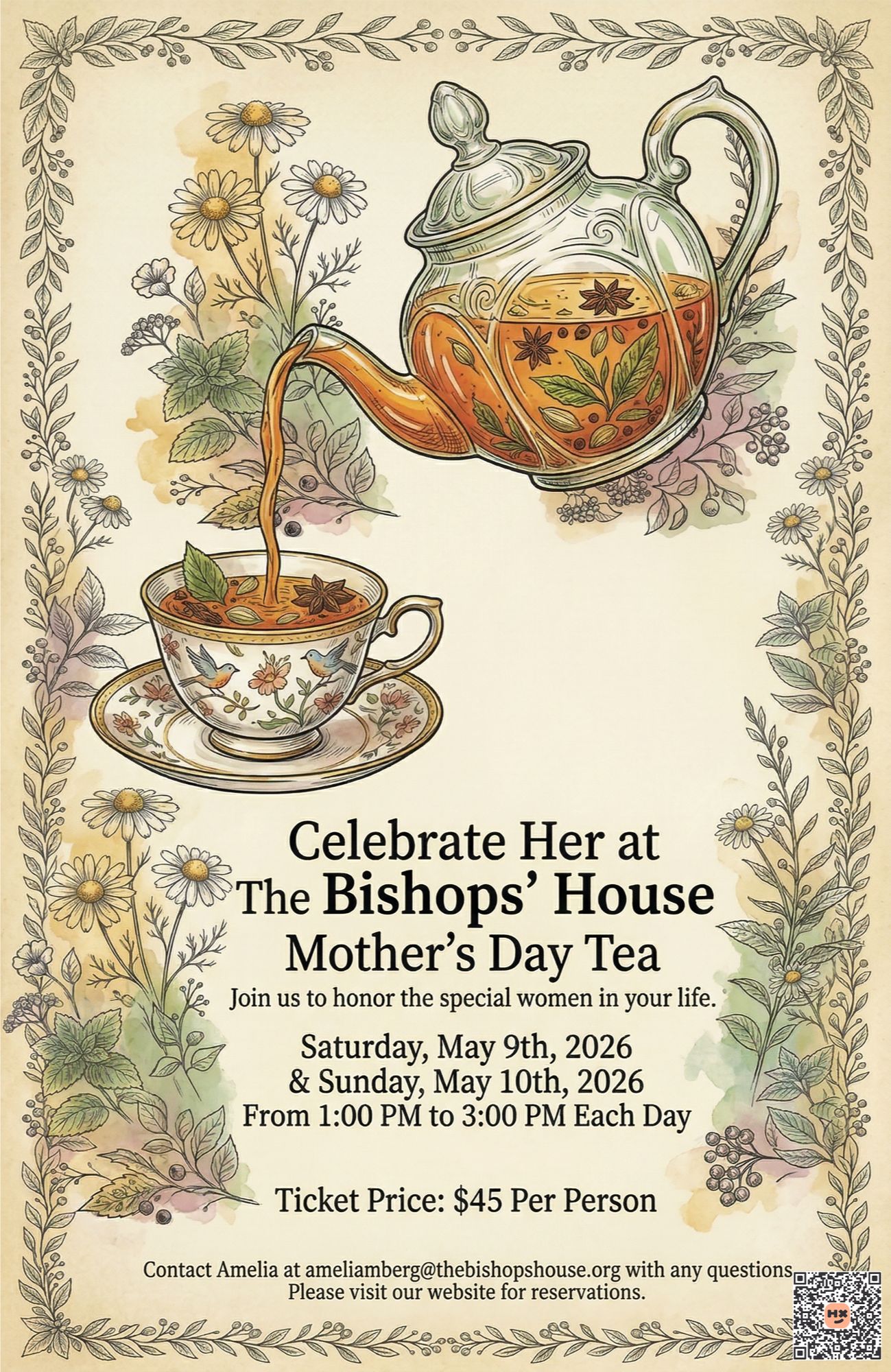This Mother's Day, give the gift of a truly memorable experience. We cordially invite you to an exclusive Tea Party fundraiser at The Bishops' House. Guests will enjoy a traditional tea service, live acoustic music, and the opportunity to stroll through our beautifully preserved grounds and historic rooms.
